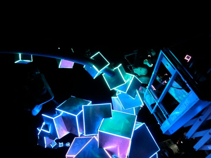 Watching them dancing together in the sunshine, I realized that Burning Man itself is the launch party for the thousands of artists/enterpreneurs who labor throughout the year to create incredible works of art, be they drivable, climbable, visual, aural, or anything else. In the early part of the week, there are a lot of crews putting finishing touches on projects and testing things out. The amount of work that goes into making project before they get to the playa is mostly invisible – what you see out there is the art, and the party.